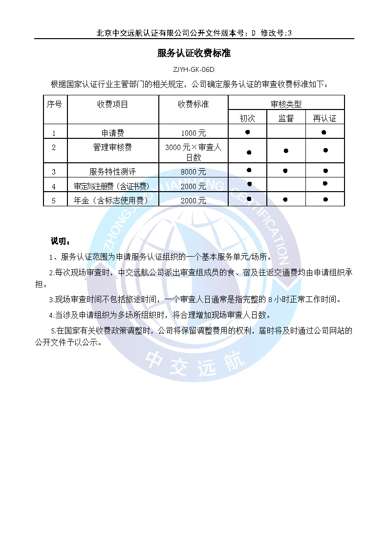 服務認證收費標準